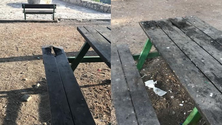 עשרות שולחנות ביער ביריה ניזוקו בעקבות מנגלים בוערים